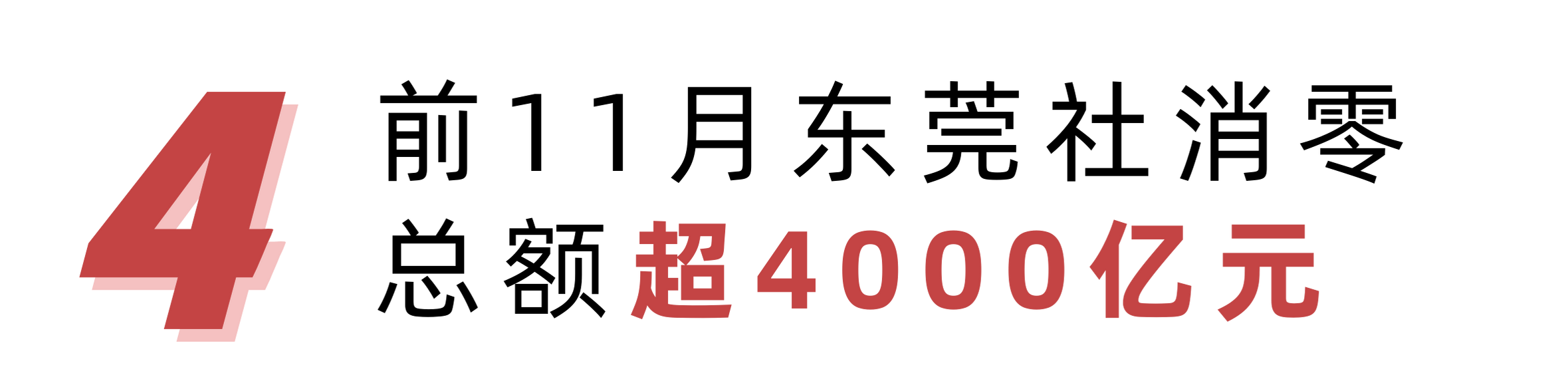 东莞市统计局发布的最新数据显示,11月份,东莞全市社会消费品零售总额同比增长6.6%。1—11月,全市社会消费品零售总额为4012.34亿元,规模位居全省第3,增速达2.1%。