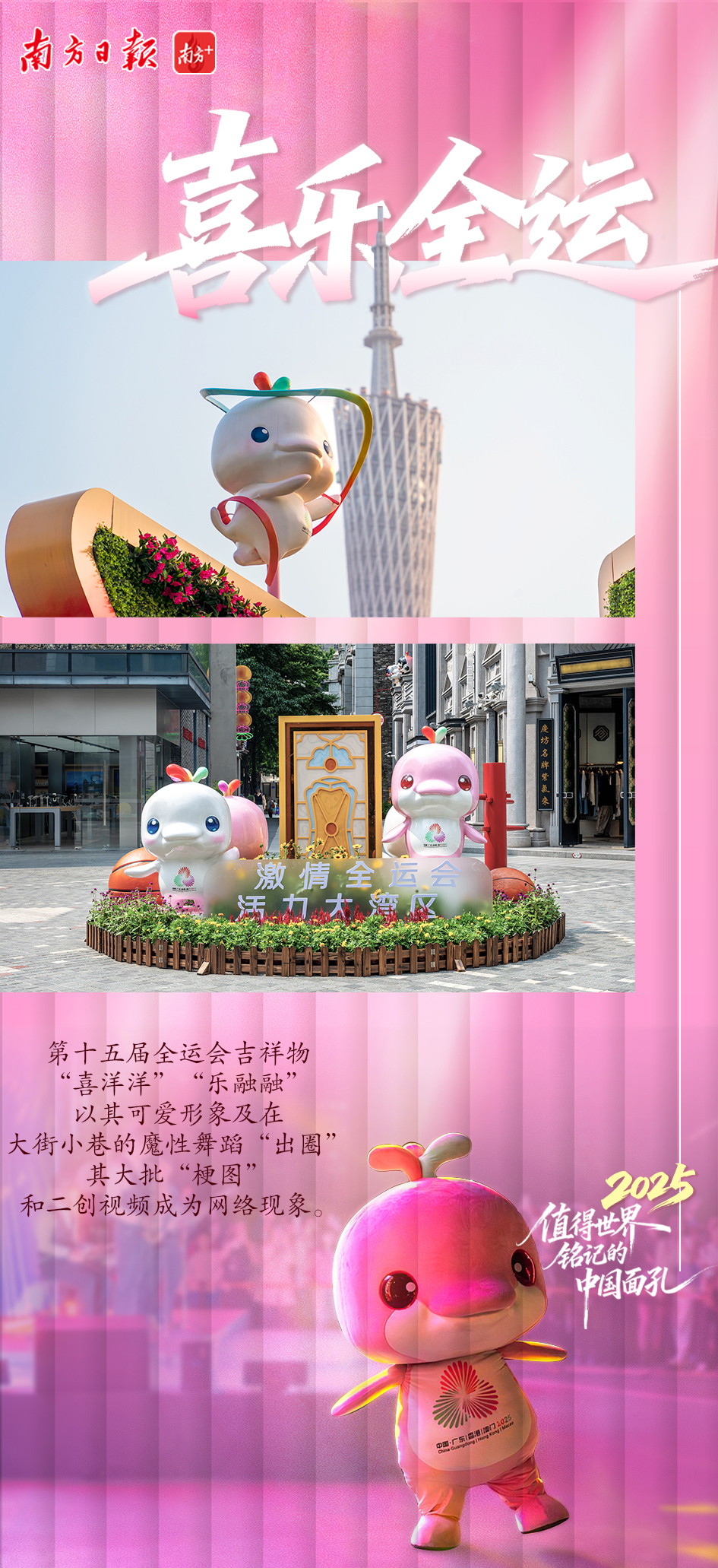 全运会吉祥物“喜洋洋”“乐融融”圆头憨态,从街头到赛场,从网络二创到成为表情包和流行梗,大湾区这对团宠的一个憨笑、一次真诚互动,能引发全网强烈共鸣。
